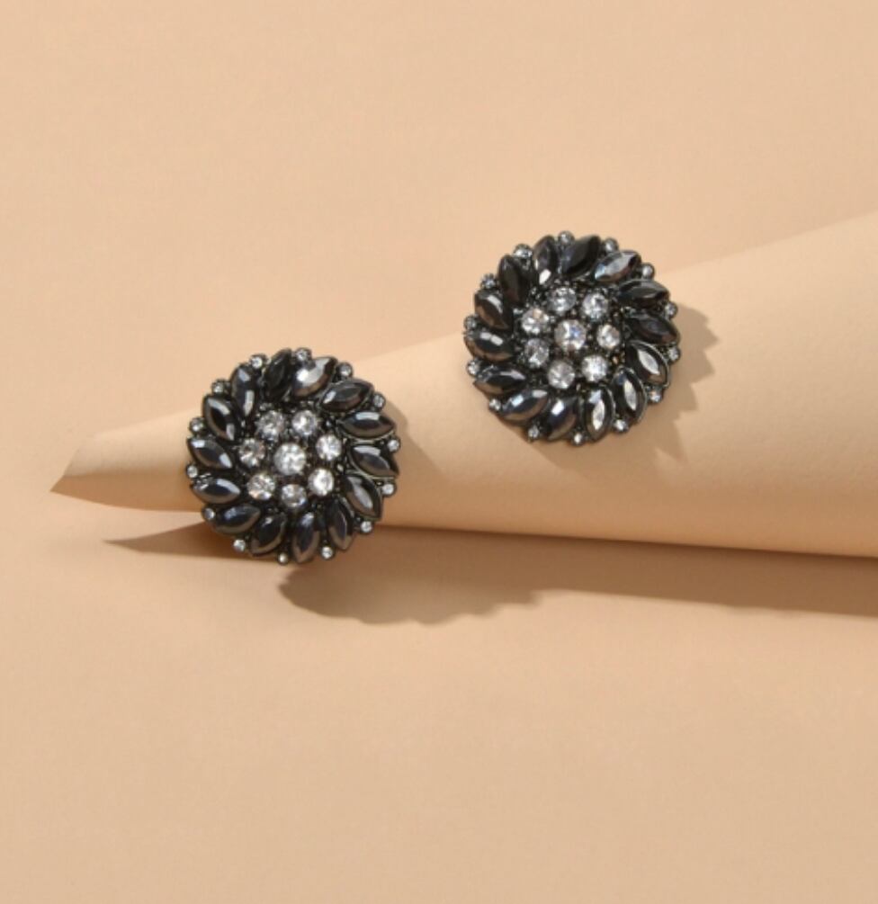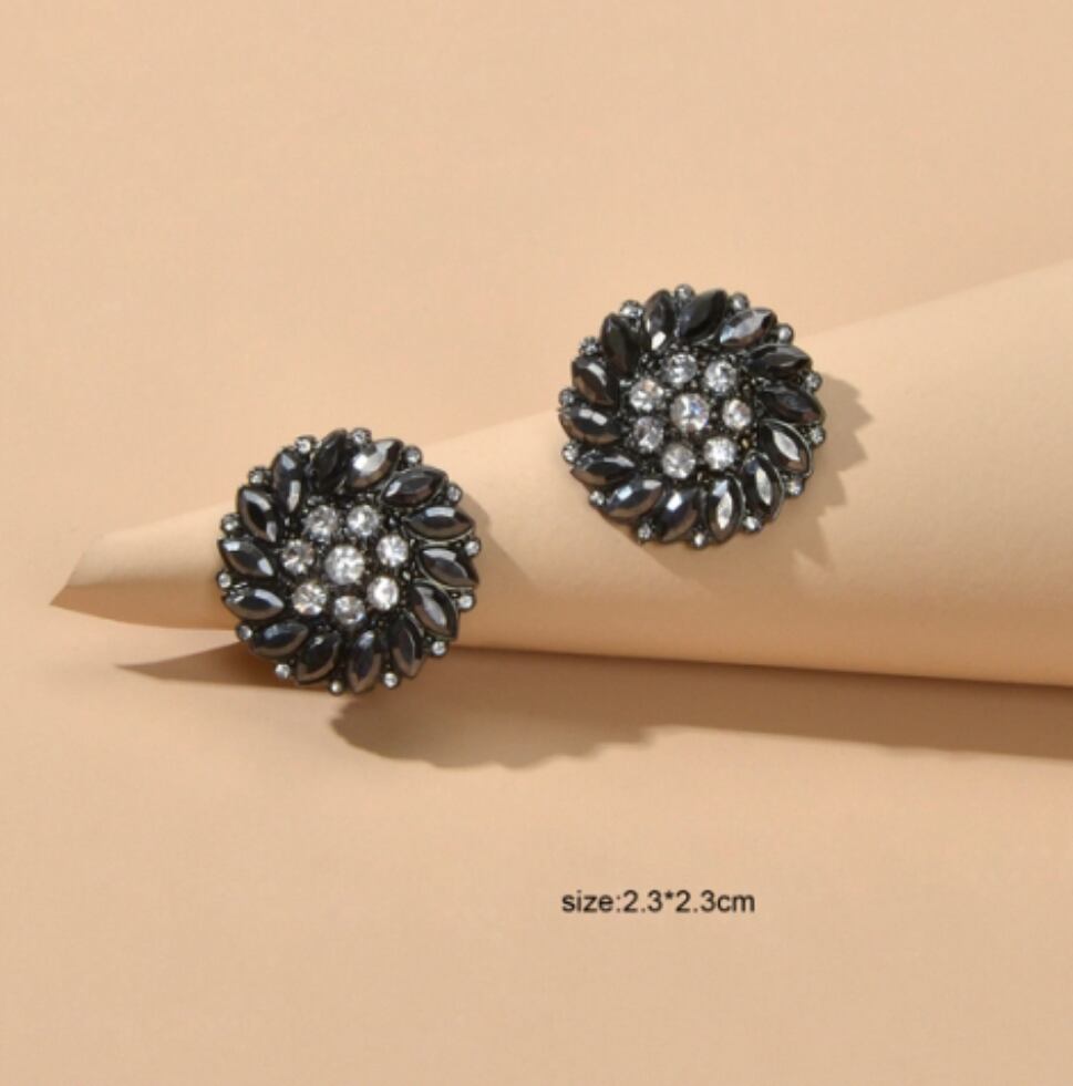 ビジューストーンピアス ブラックピアス 軽いピアス 円ピアス