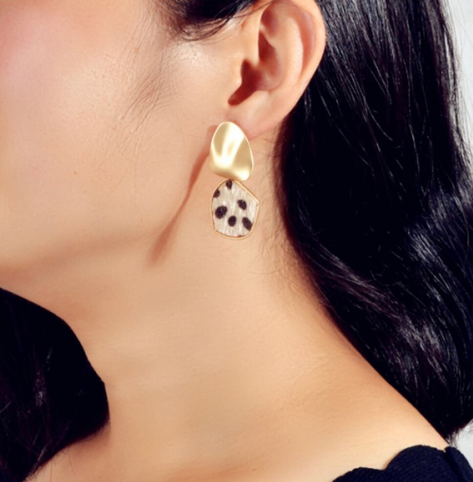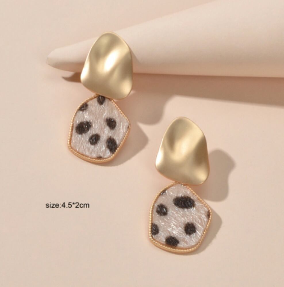 ヒョウ柄ピアス ハラコピアス ゴールドピアス 小ぶりピアス レトロ系ピアス