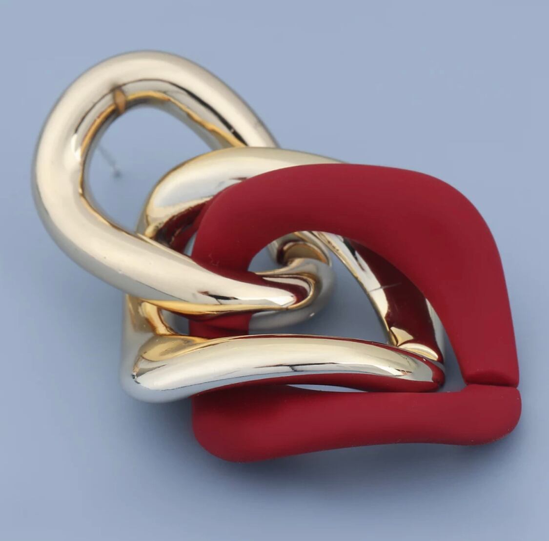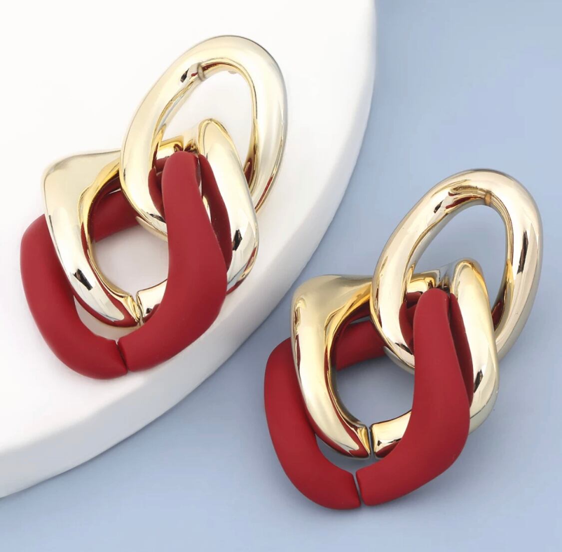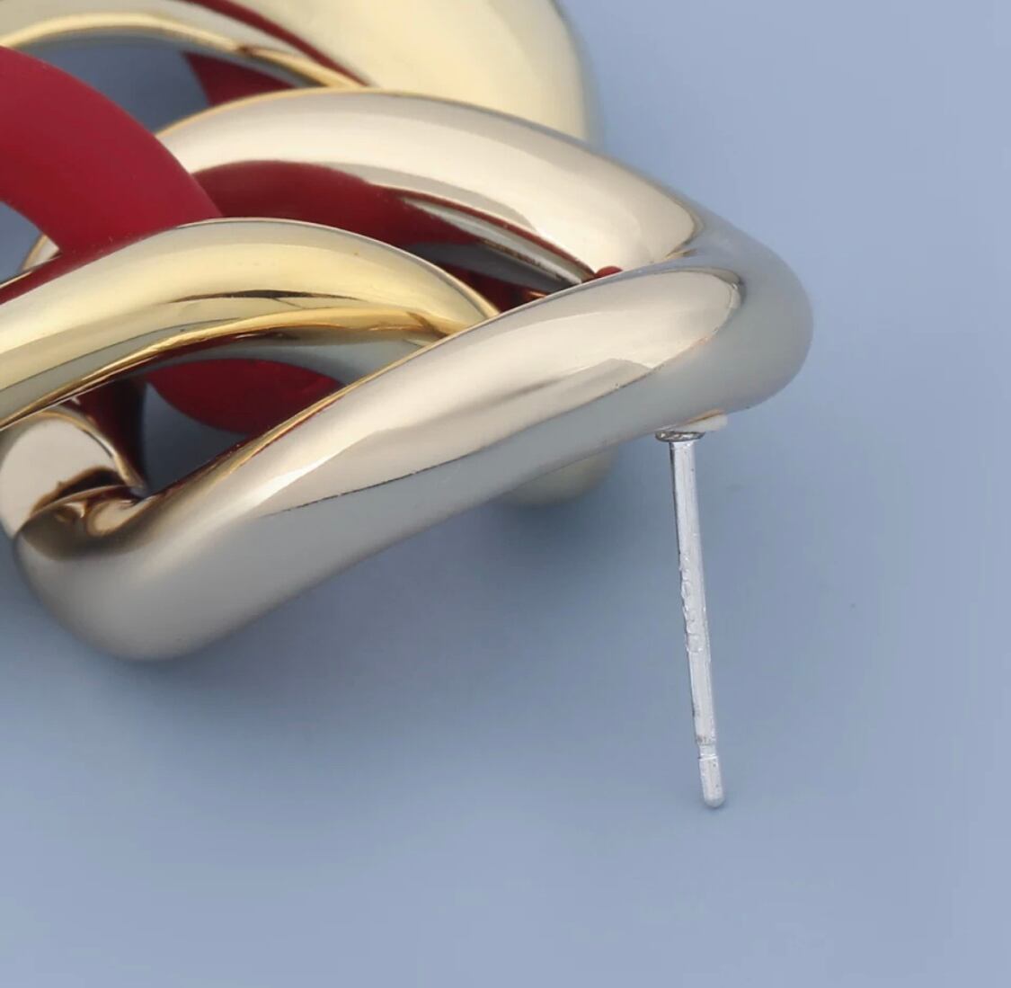 ゴールドとレッドの大ぶりピアスです(୨୧ ❛ᴗ❛)✧