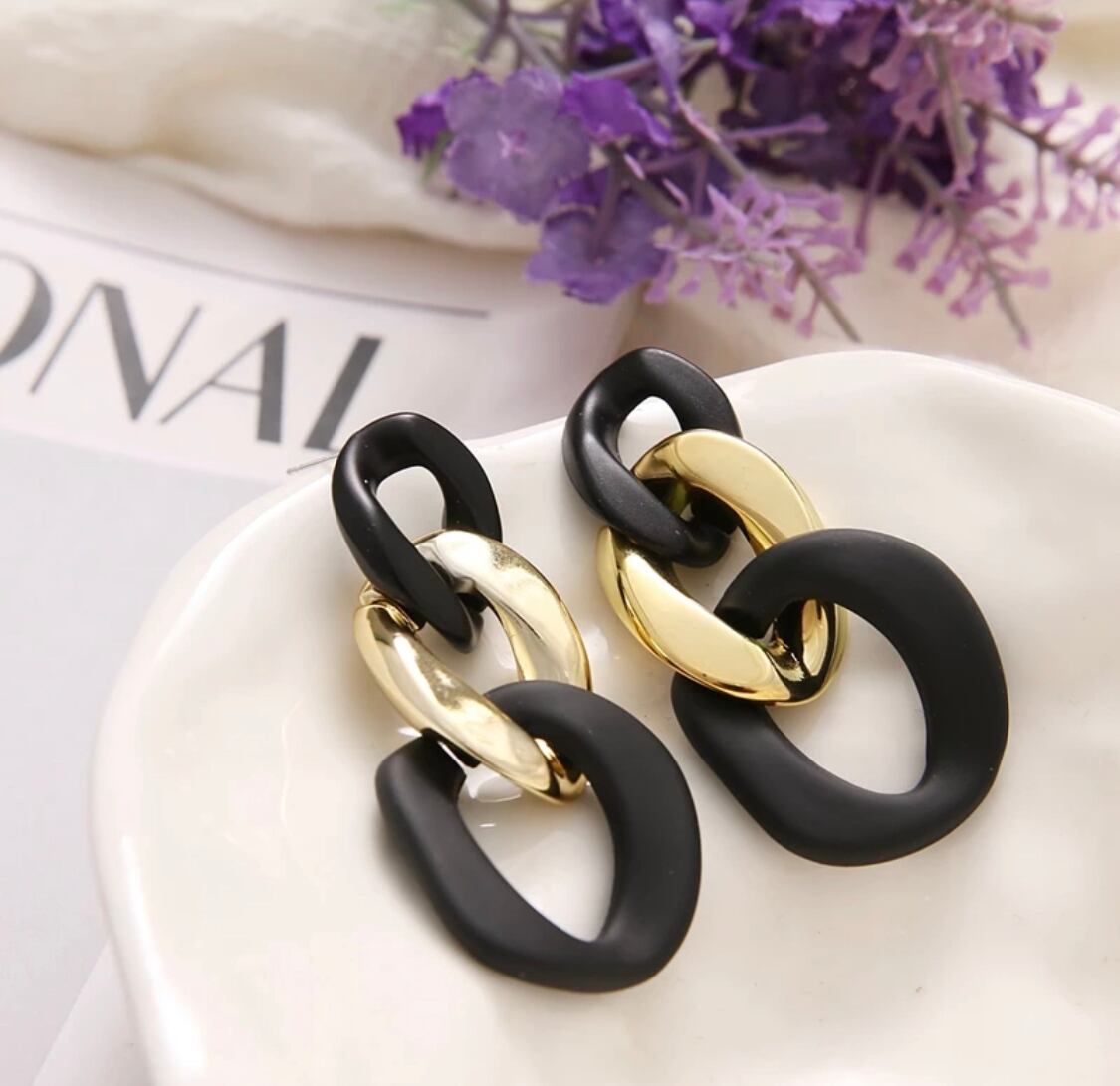 ゴールドとブラックの大ぶりの3連ピアスです(୨୧ ❛ᴗ❛)✧