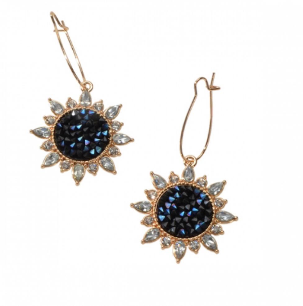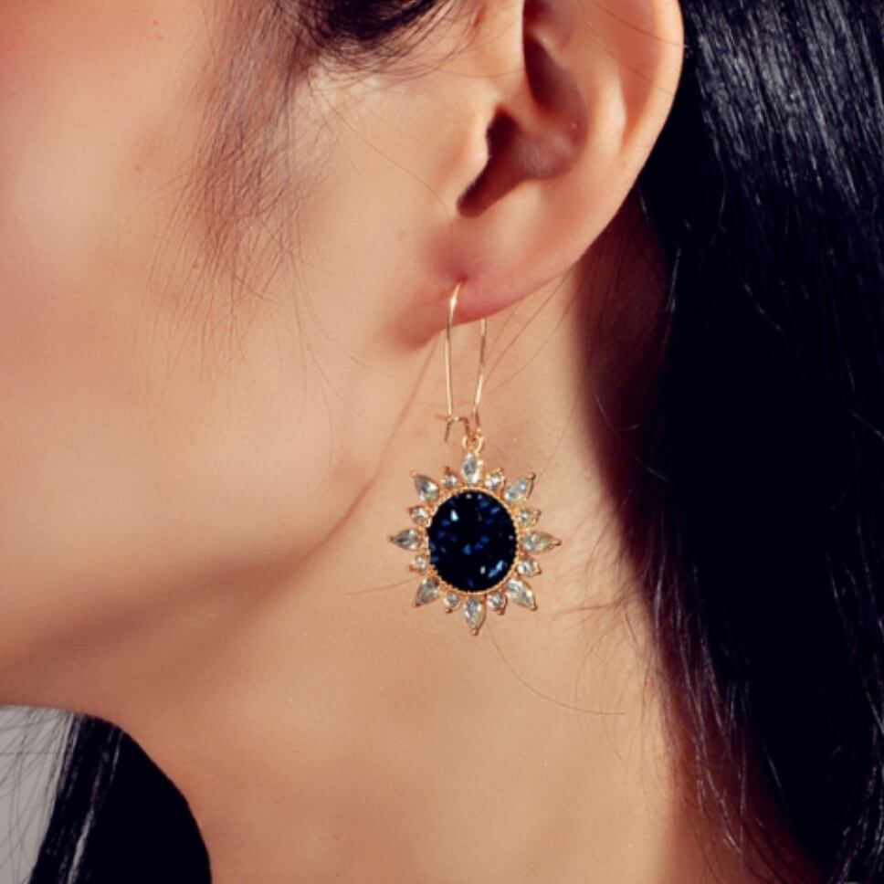 太陽ピアス ネイビーピアス クリスタルストーン フックピアス キラキラピアス