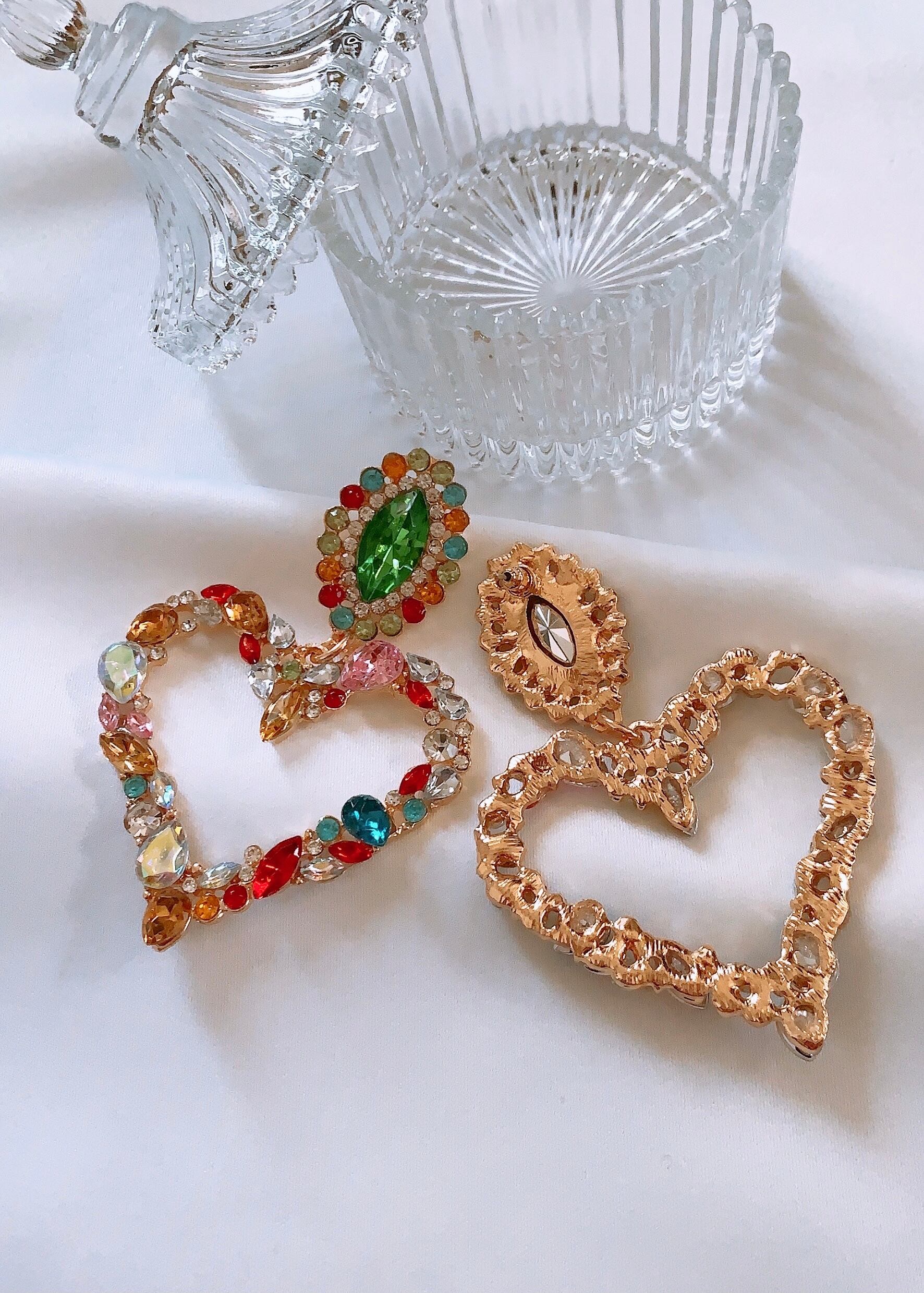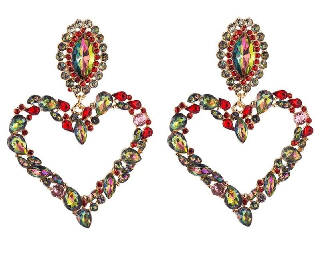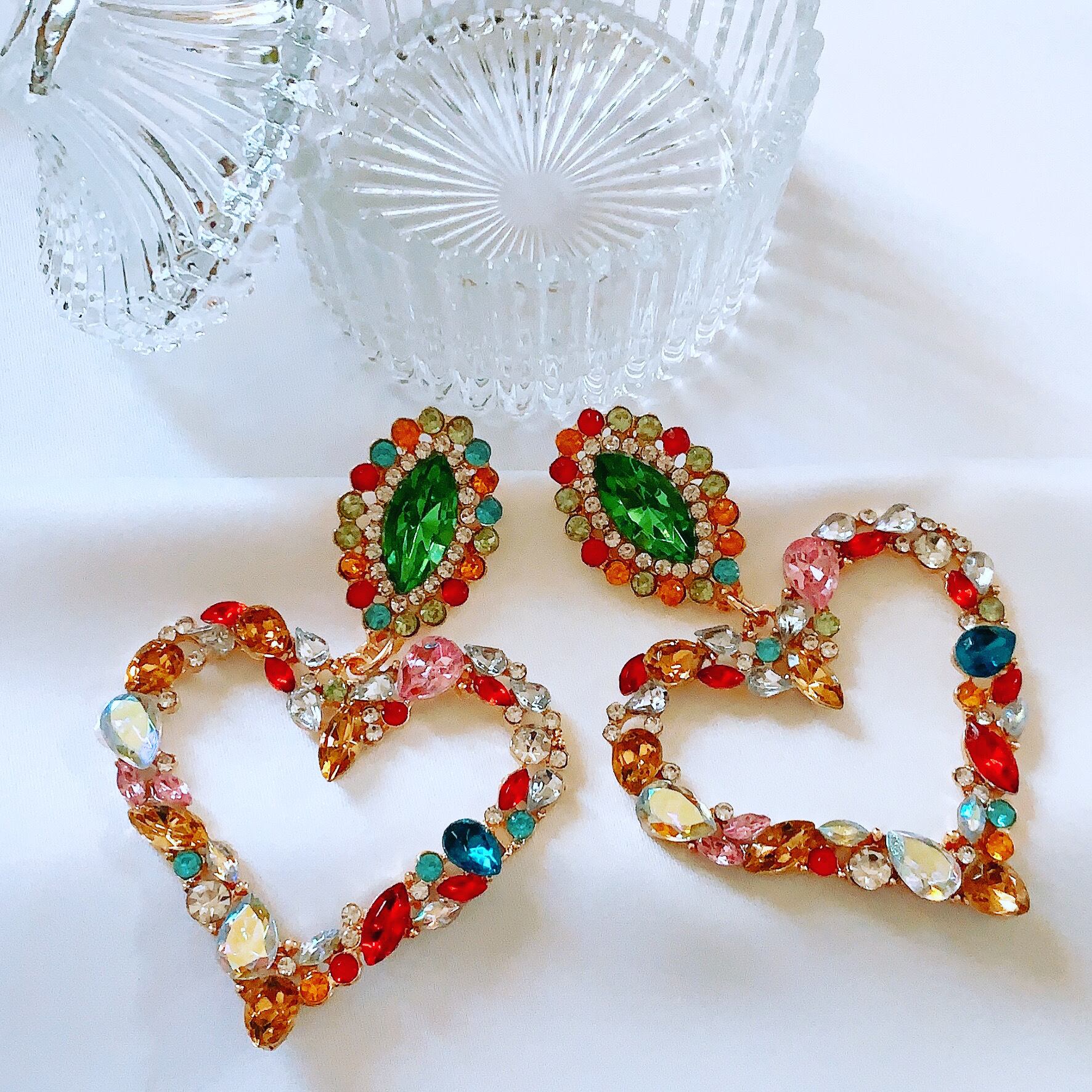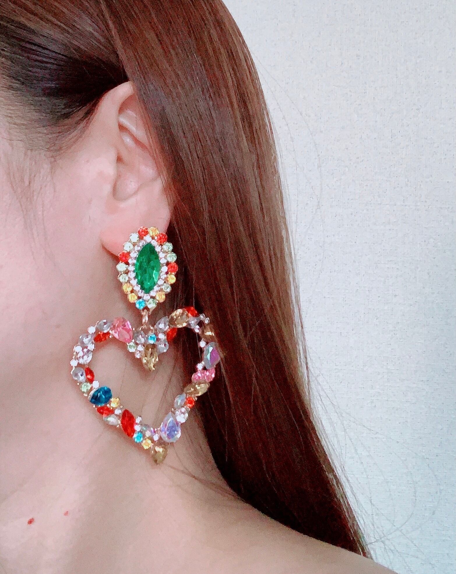 大ぶりハートピアス カラフルビジュー ゴージャスピアス ポップピアス