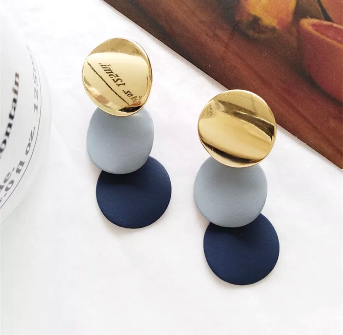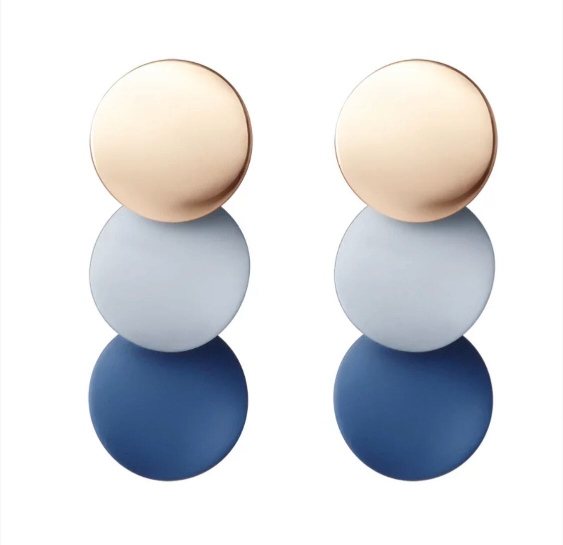 ブルー系 3連プレートピアス ゴールドピアス ネイビーピアス 水色ピアス