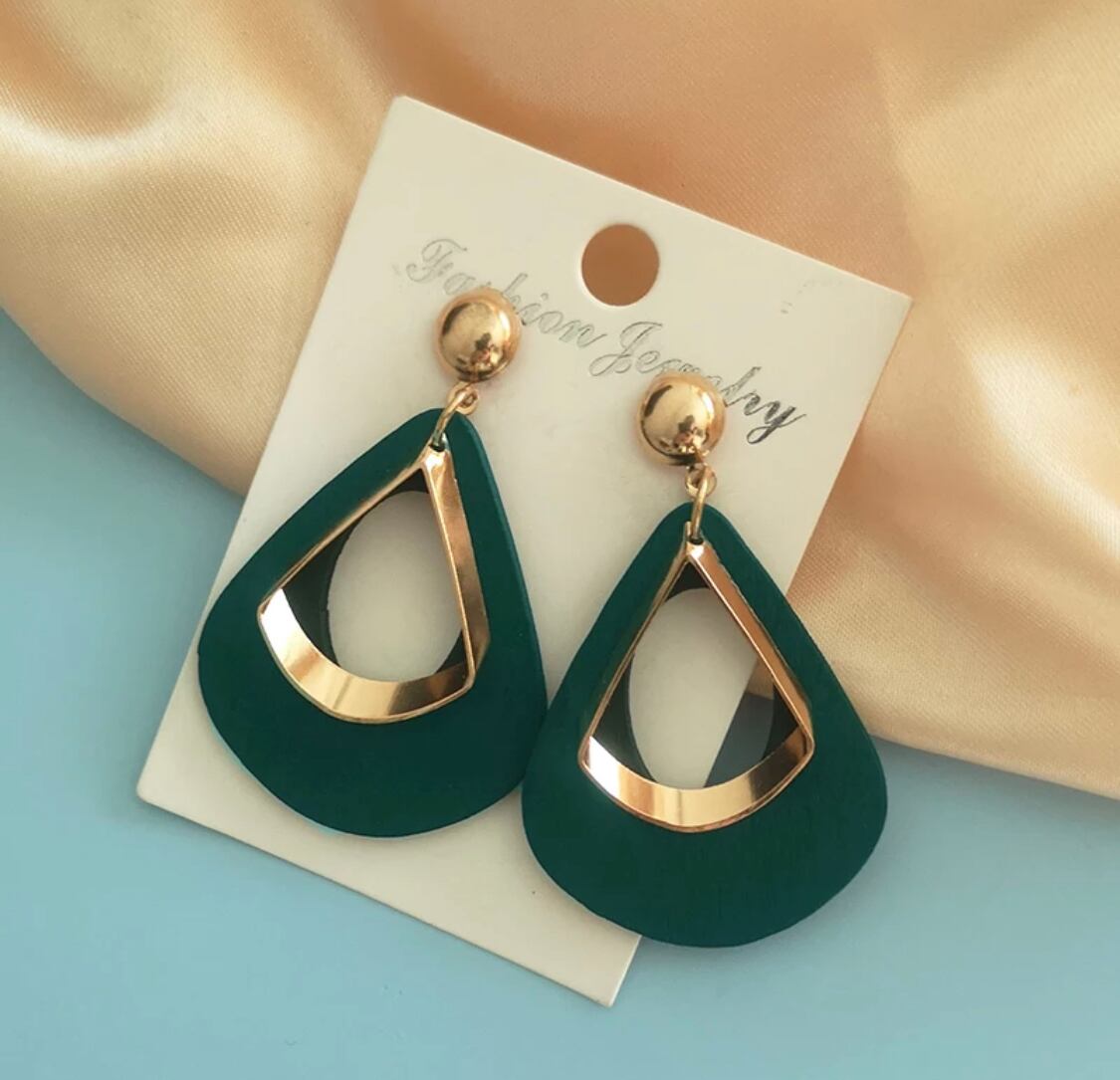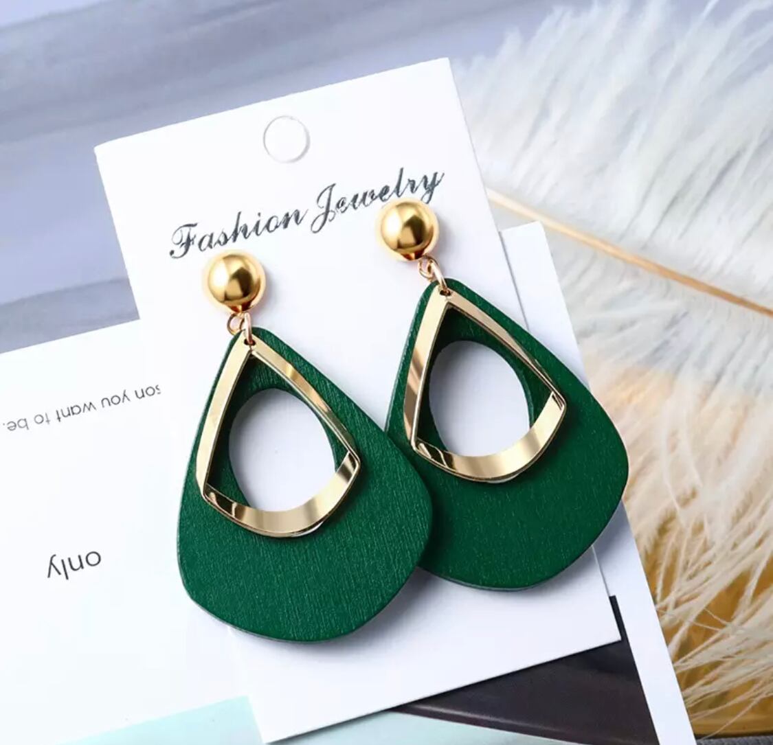 トライアングルピアス ウッドピアス ゴールドピアス グリーンピアス 緑系ピアス 軽量ピアス