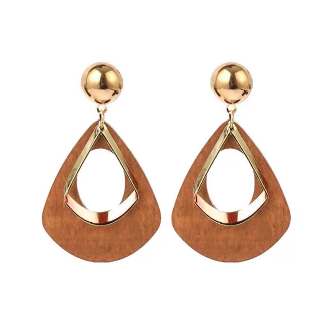 ウッドとゴールドのトライアングルピアスです!